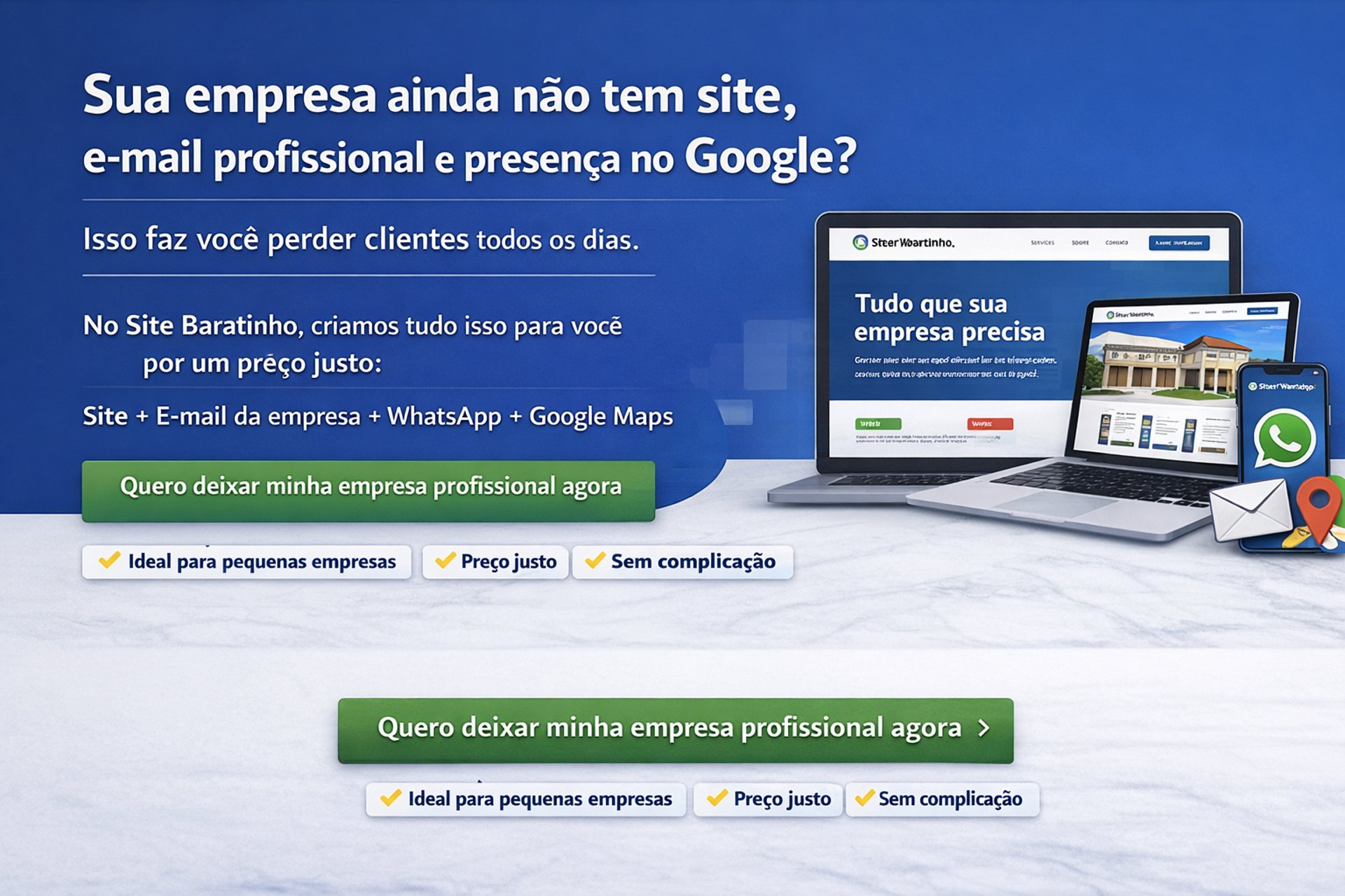 No sitebaratinho, ajudamos pequenas empresas a terem presença online profissional sem complicação.